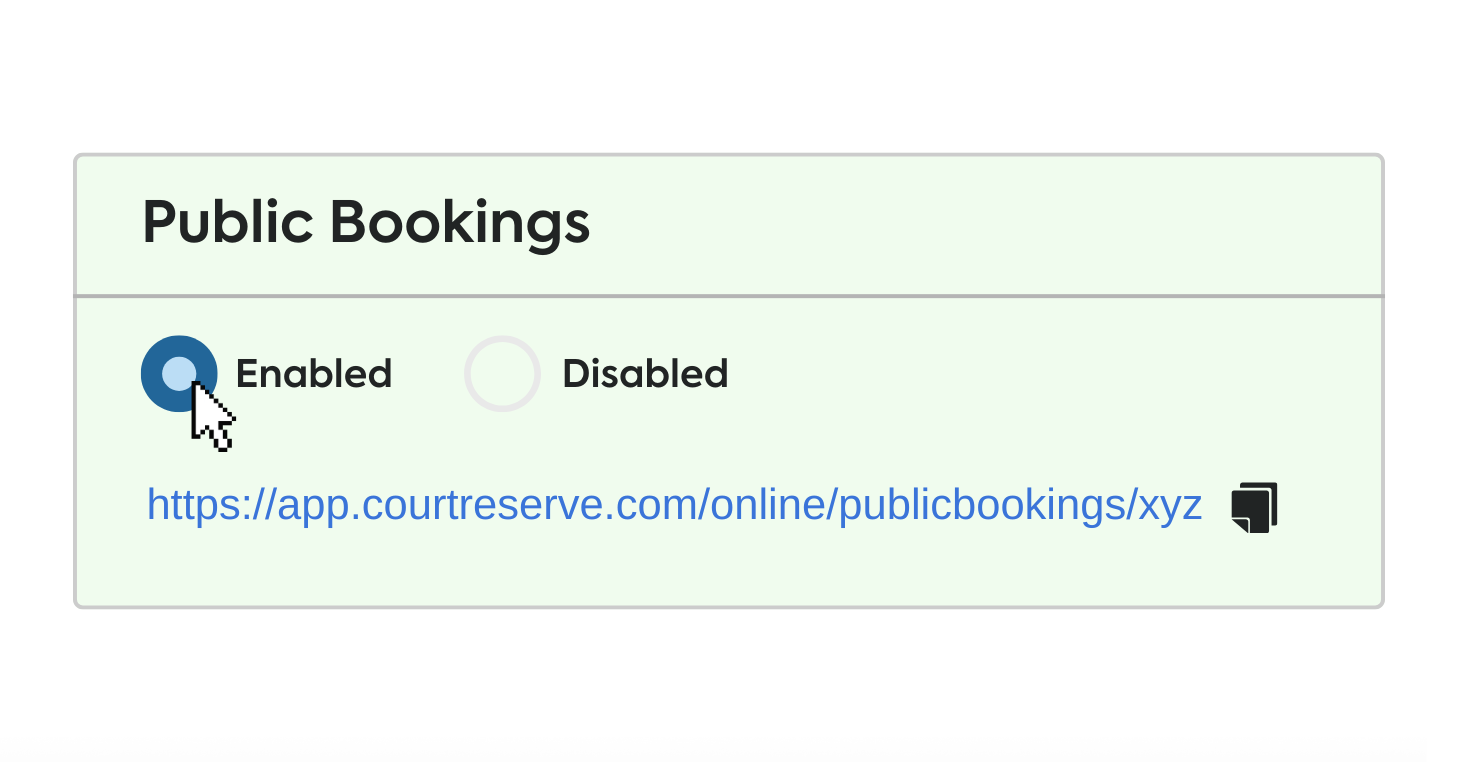 CourtReserve clubs can easily go into their settings and turn on Public Bookings to generate a unique link in seconds.
